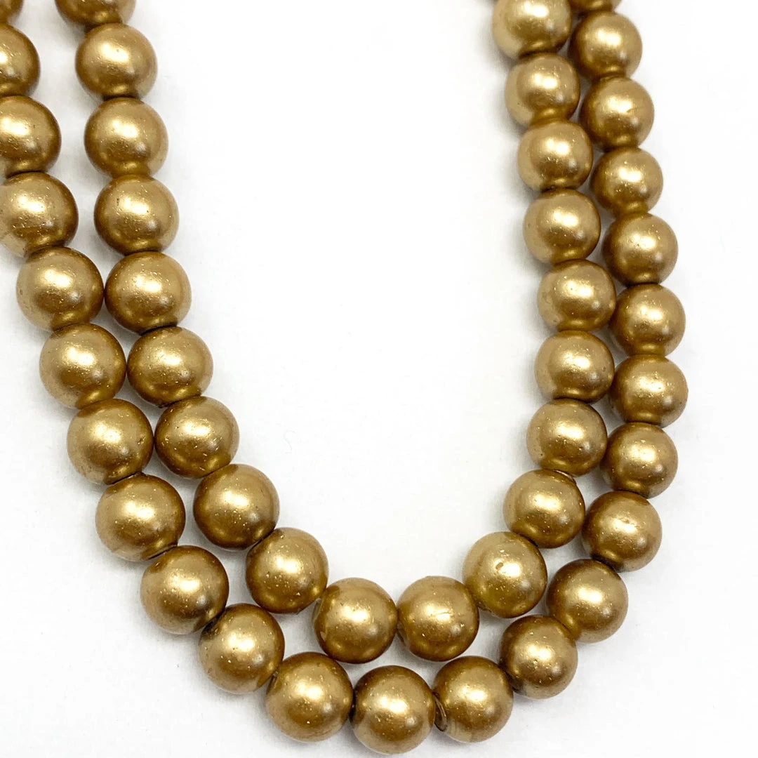 27″ 8mm Golden Pearl Glass Bead Necklace (Dozen)
