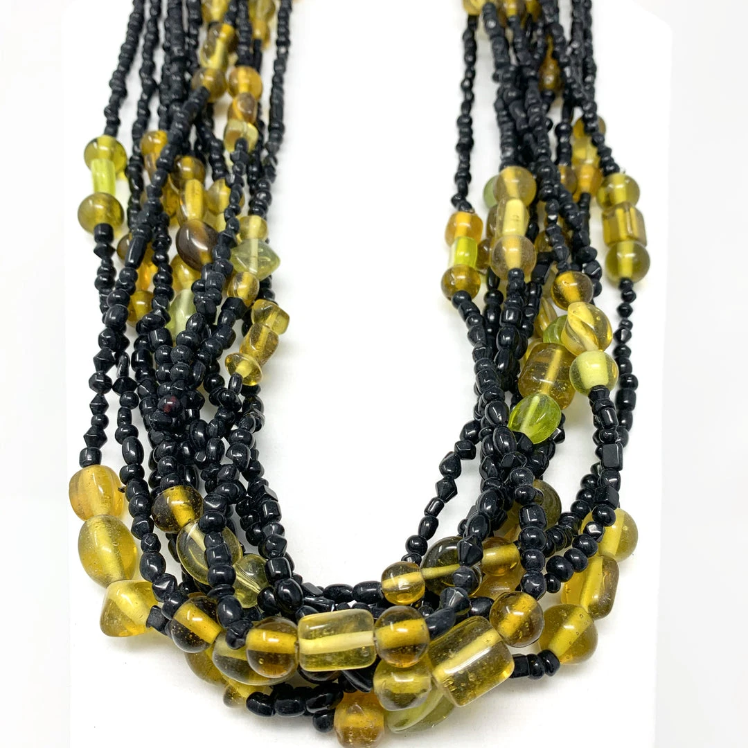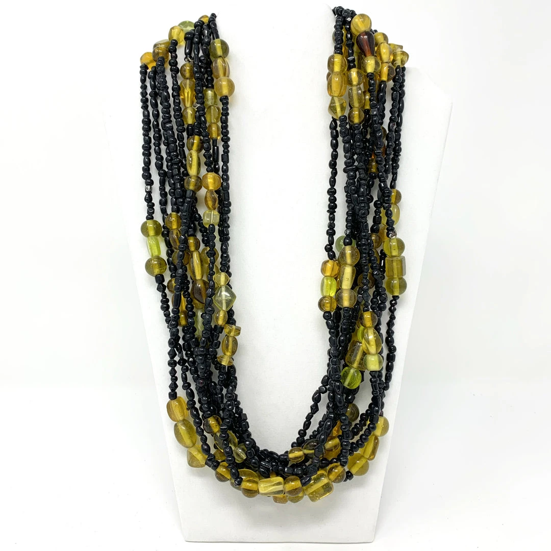 27″ Black and Golden Glass Bead Necklace (Dozen)
