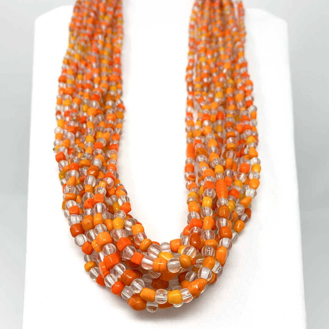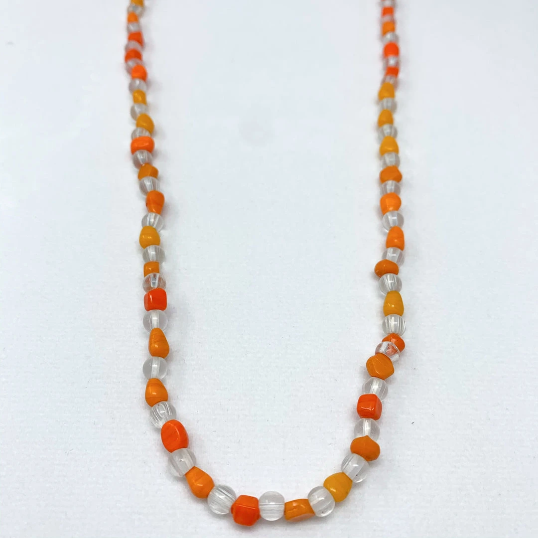 27″ Clear/Orange Glass Bead Necklace (Dozen)