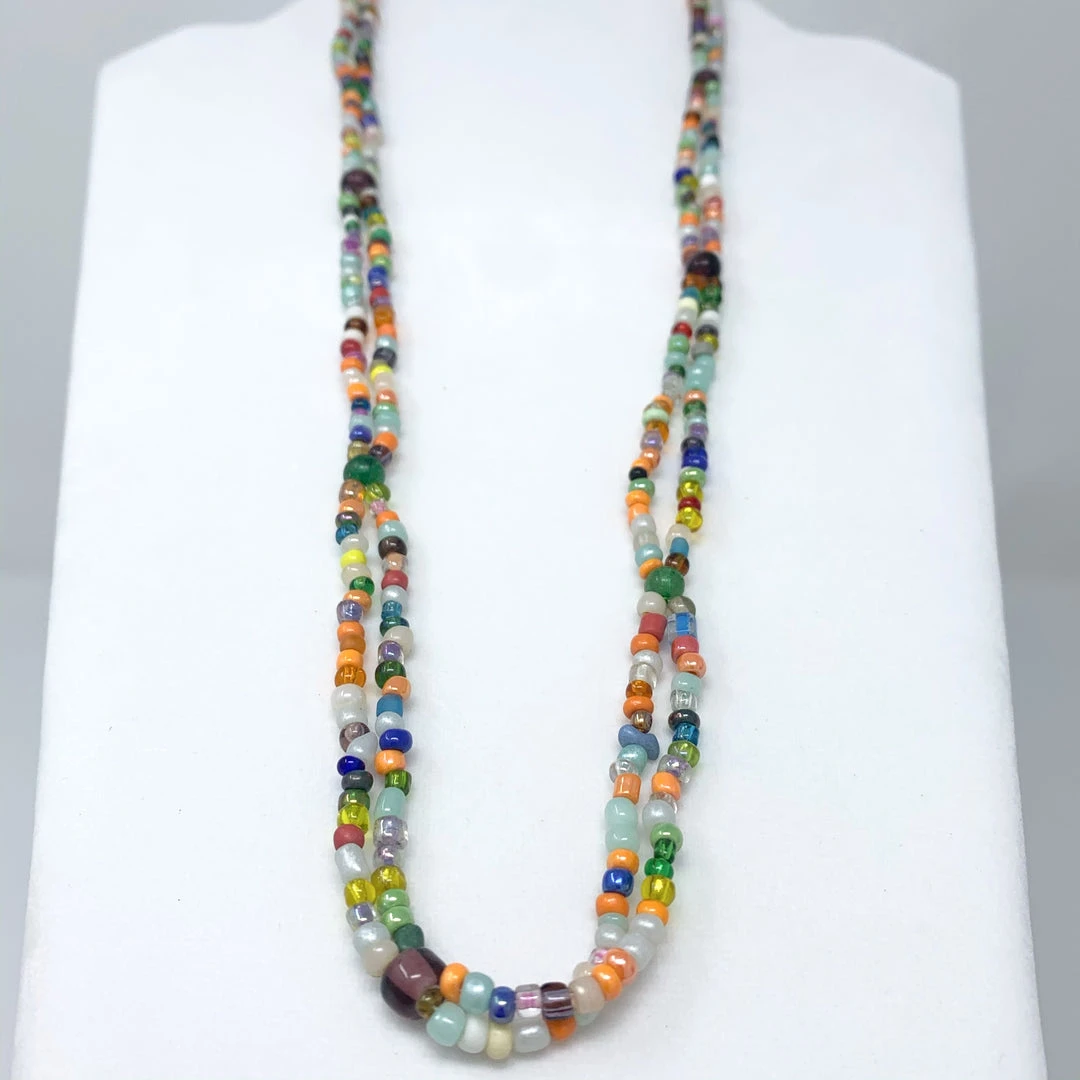 27″ Double Strand Multicolor Glass Bead Necklace (Dozen)