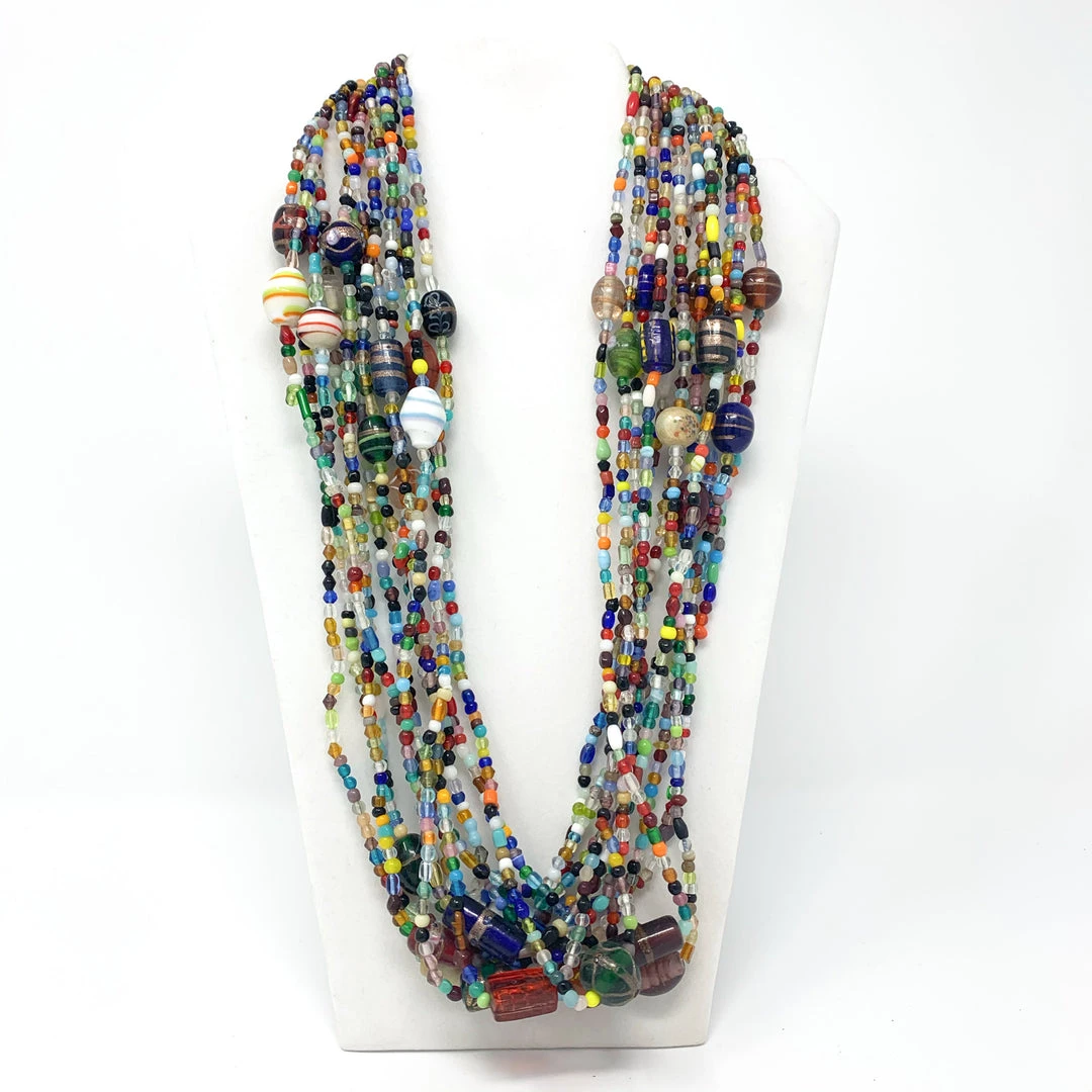 27″ Multicolor Festive Glass Bead Necklace (Dozen)