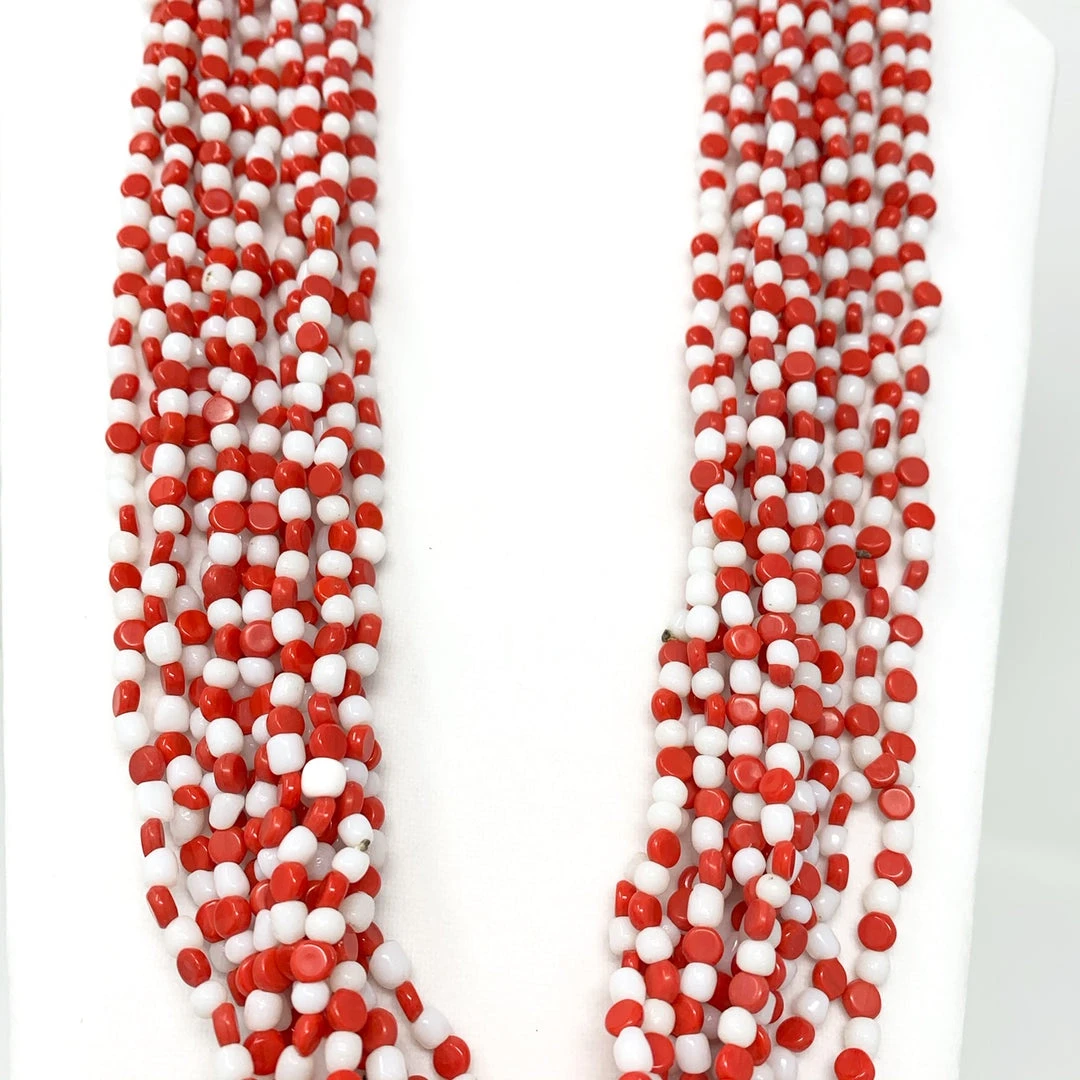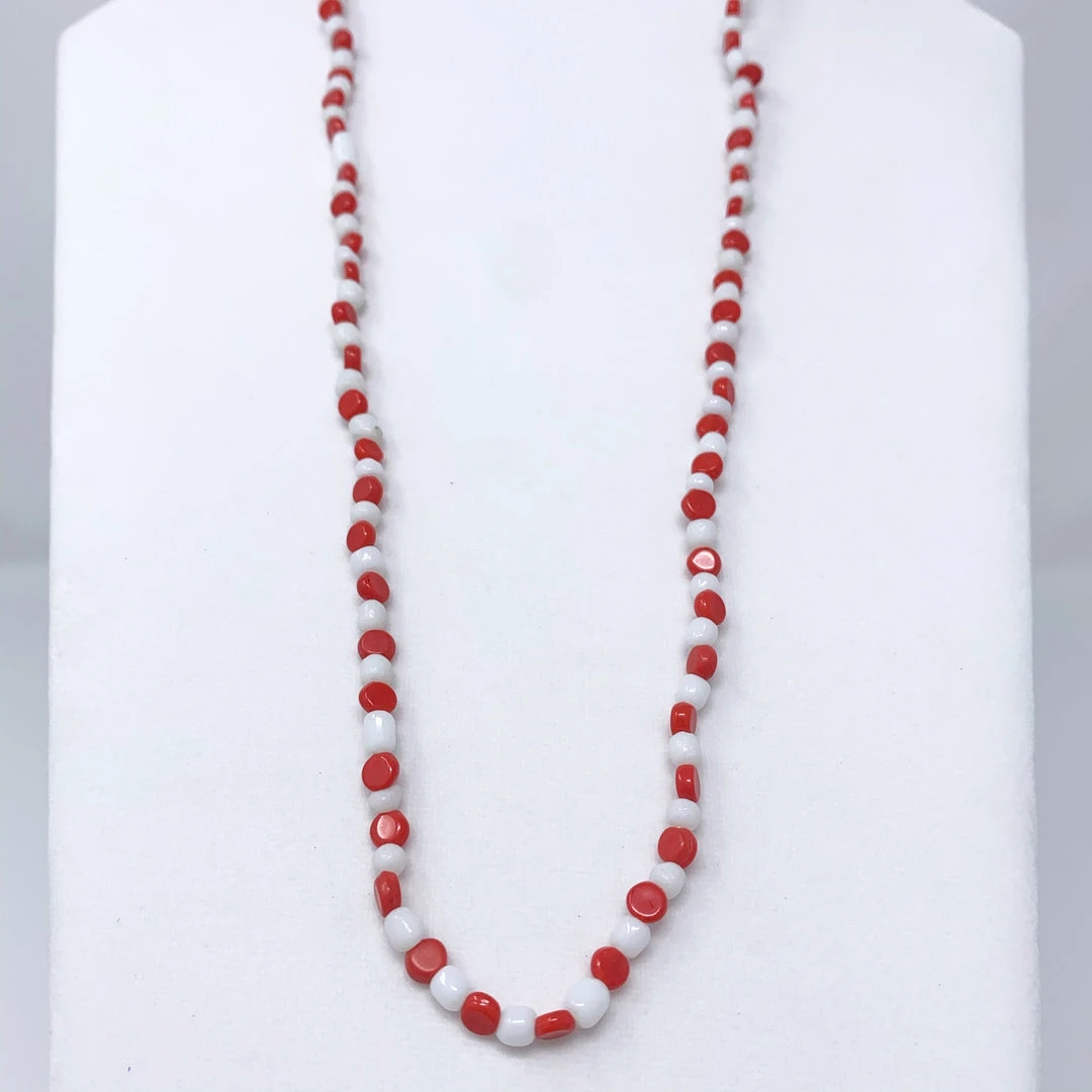 27″ Necklace Red and White Glass Bead Necklace (Dozen)