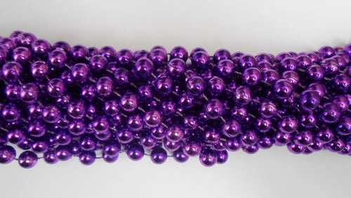 48″ 10mm Round Metallic Purple Mardi Gras Beads