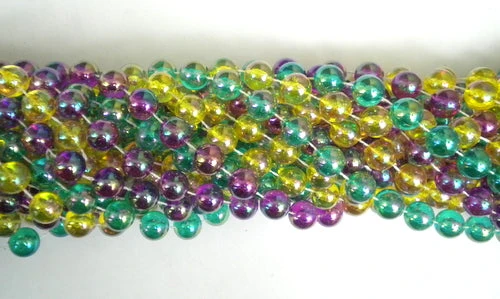 48″ 12mm Round AB Purple Gold and Yellow Mardi Gras Beads