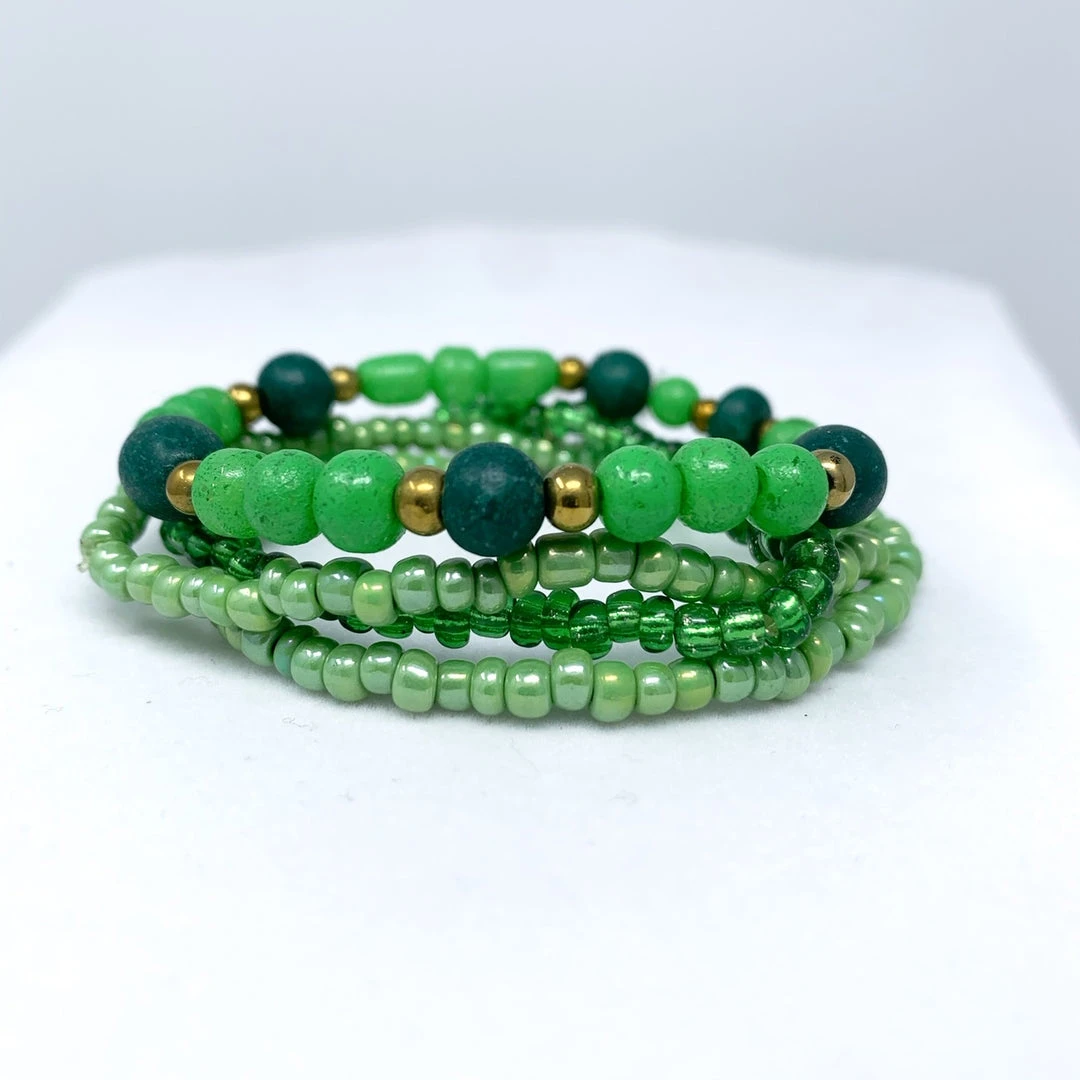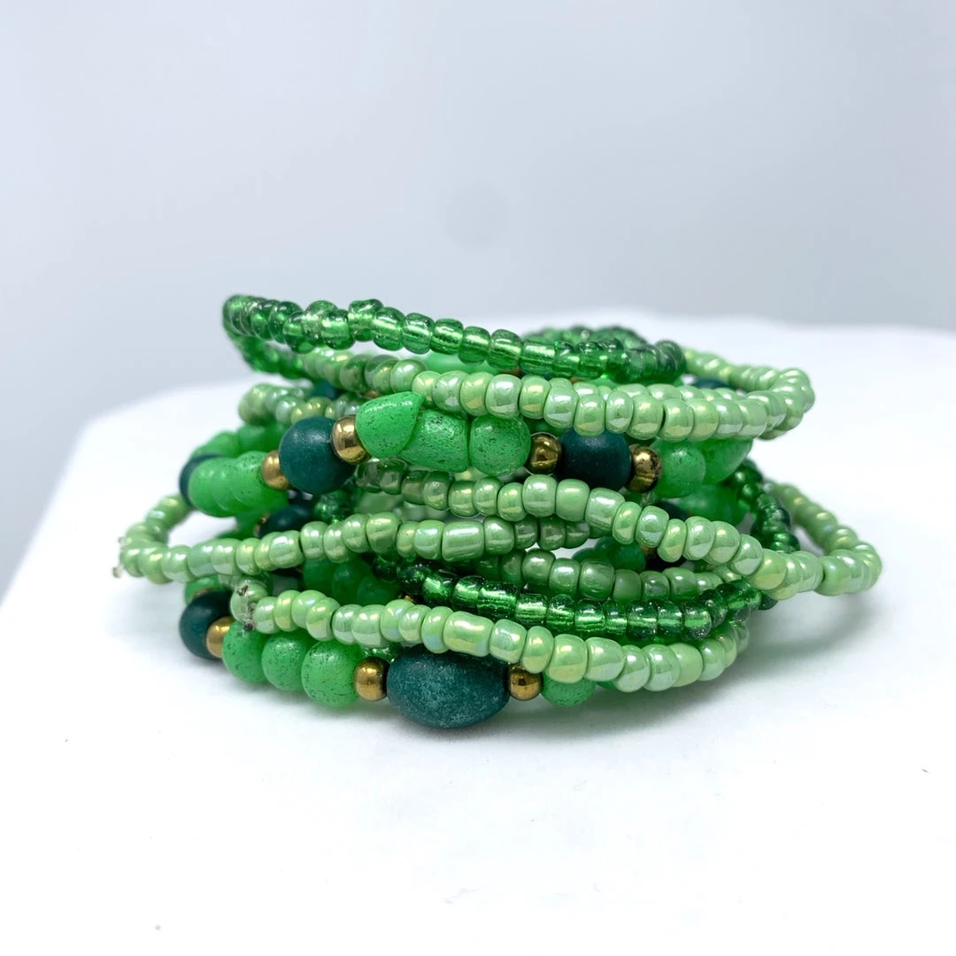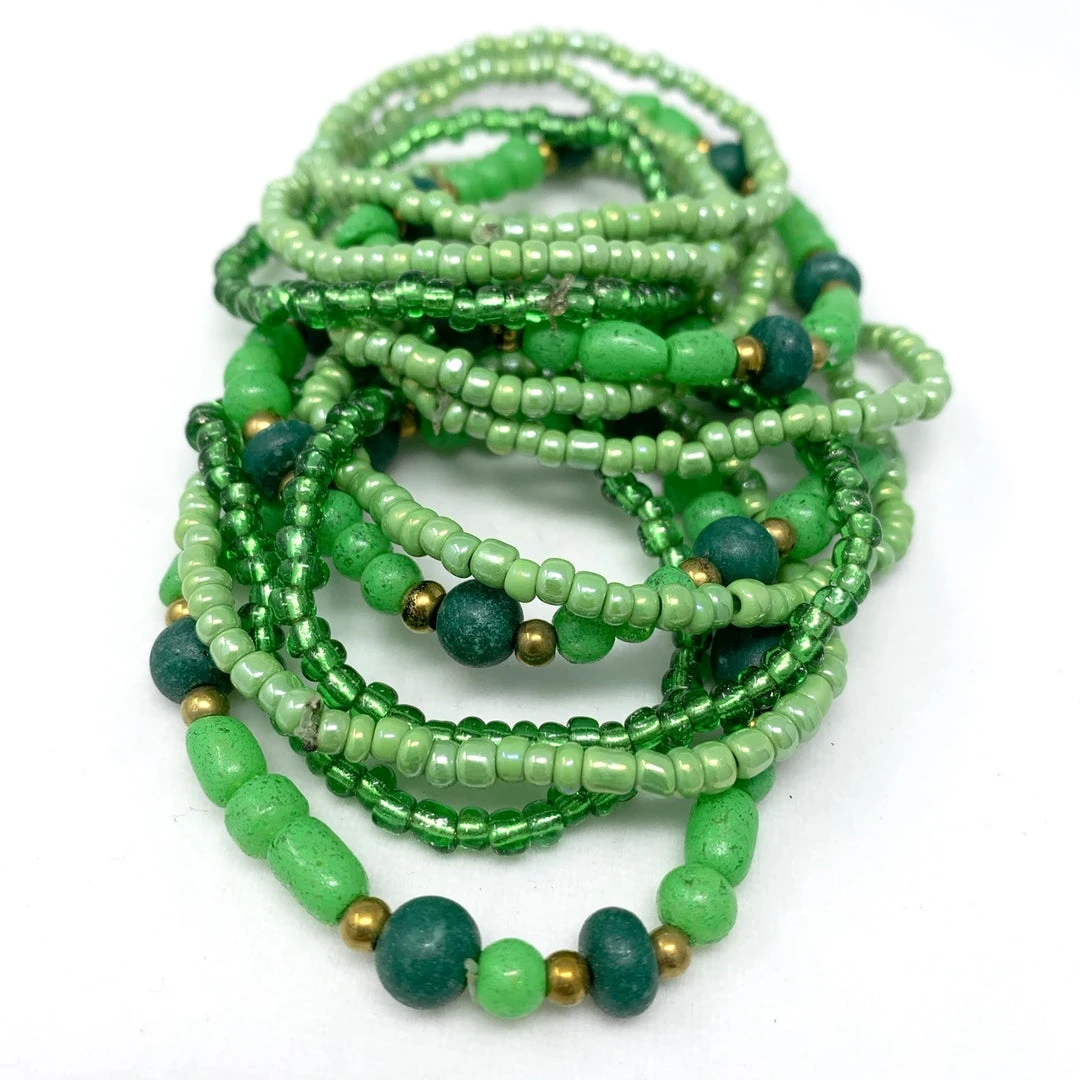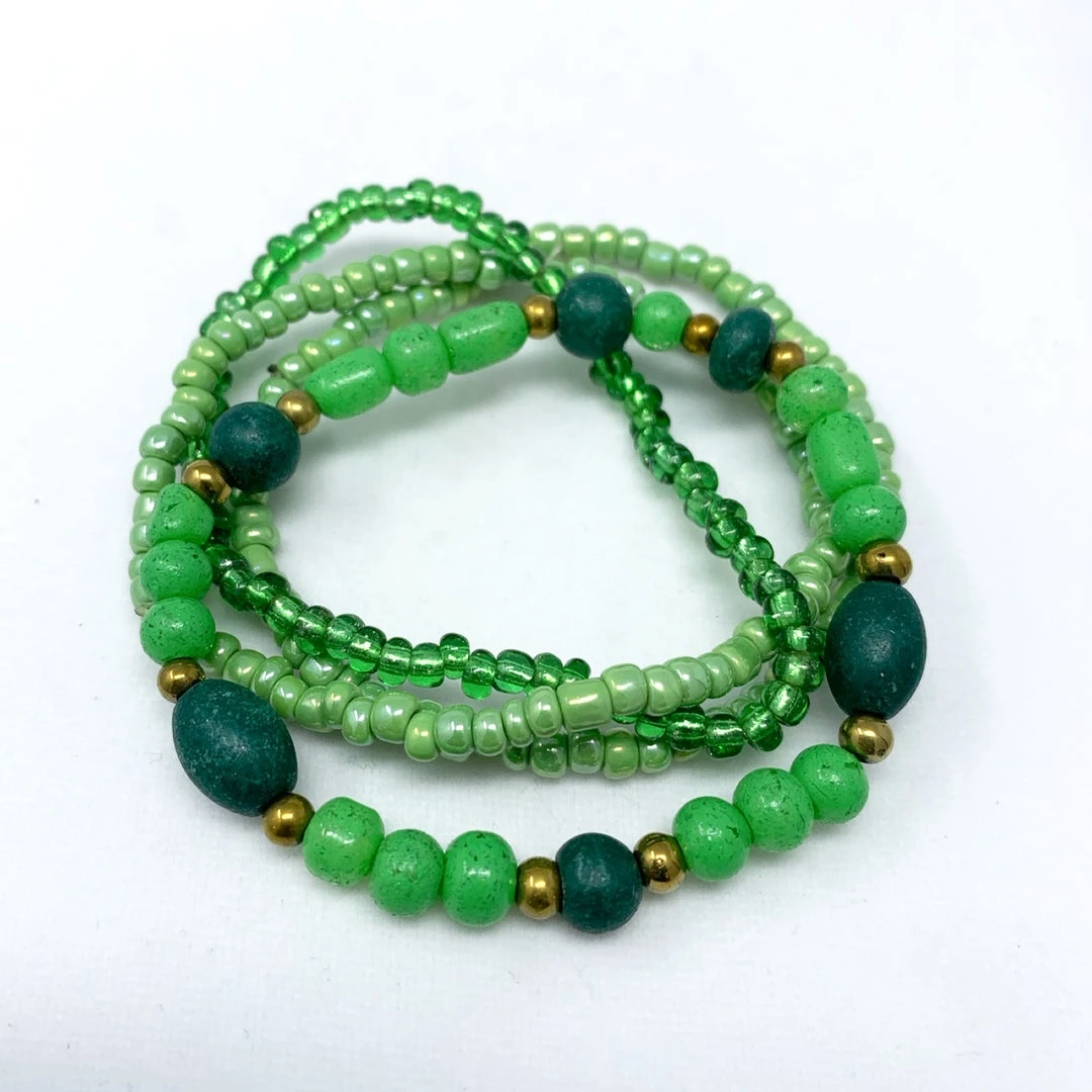 7″ Glass Bead Bracelets – Multi Green Stones (Dozen)