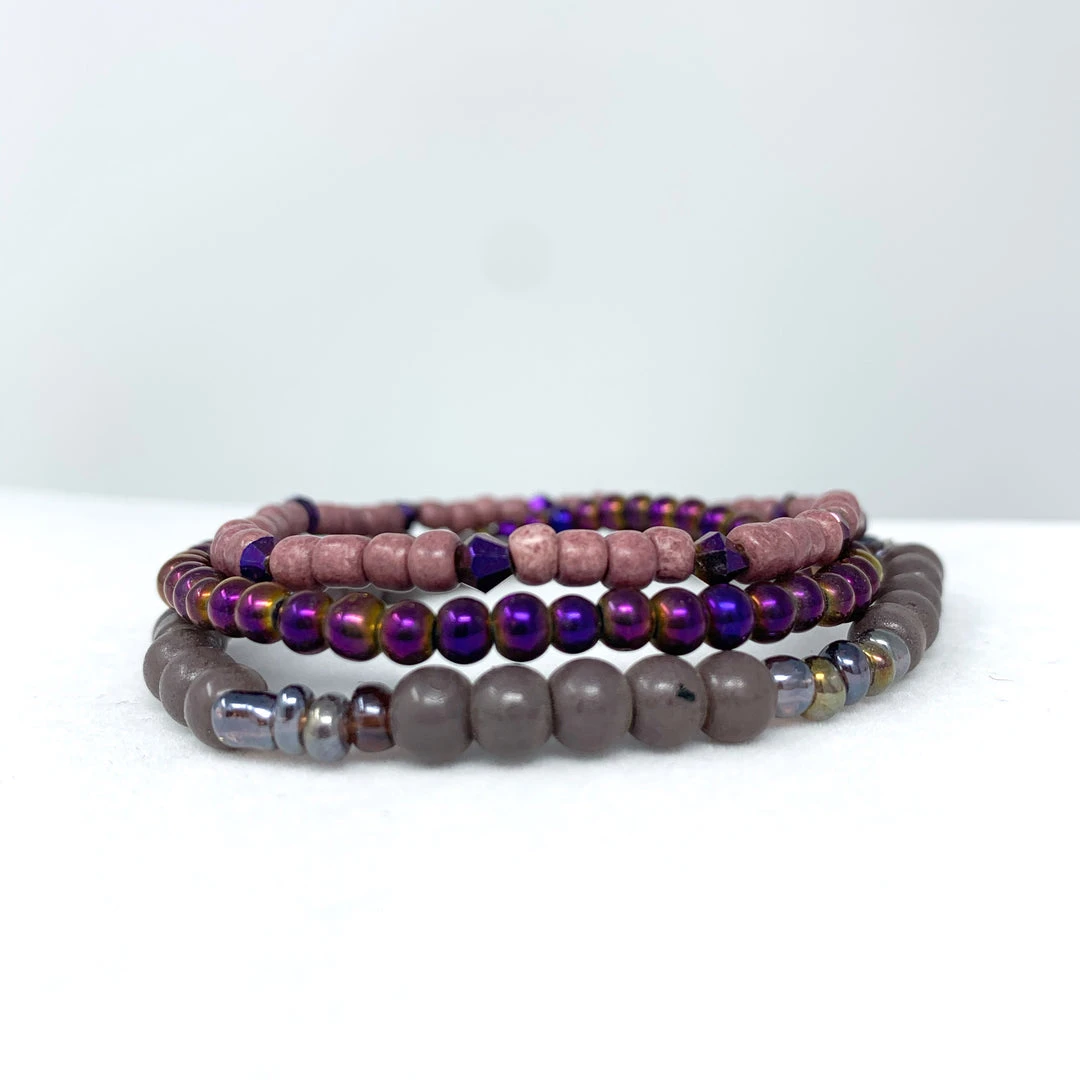 7″ Glass Bead Bracelets – Purple and Pink (Dozen)