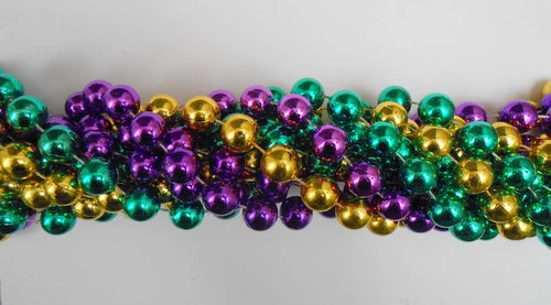 72″ 16mm Round Metallic Purple, Gold and Green Mardi Gras Beads