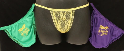 Assorted Purple, Green, and Gold Panties with Mardi Gras Logo (Dozen)