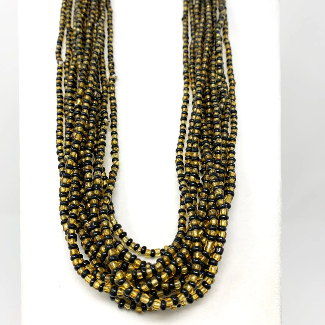 27″ Black and Golden Glass Bead Necklace (Dozen)