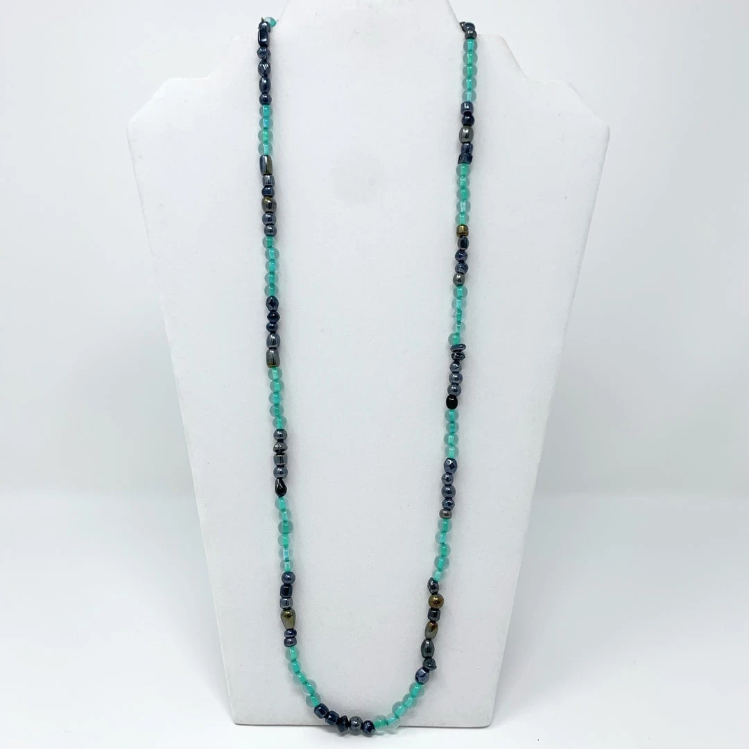 27″ Navy Metallic And Teal Glass Bead Necklace (Dozen)