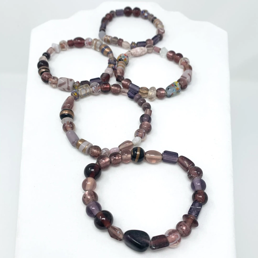 7″ Glass Bead Bracelets – Multi Shades of Purple (Dozen)