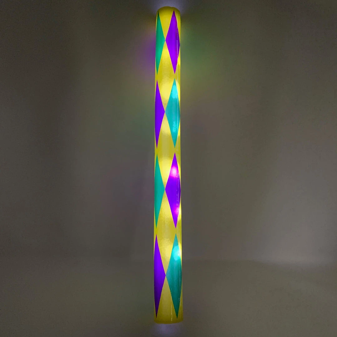 LED Foam Baton with 6 Lights and with Purple, Green and Gold Harlequin Design