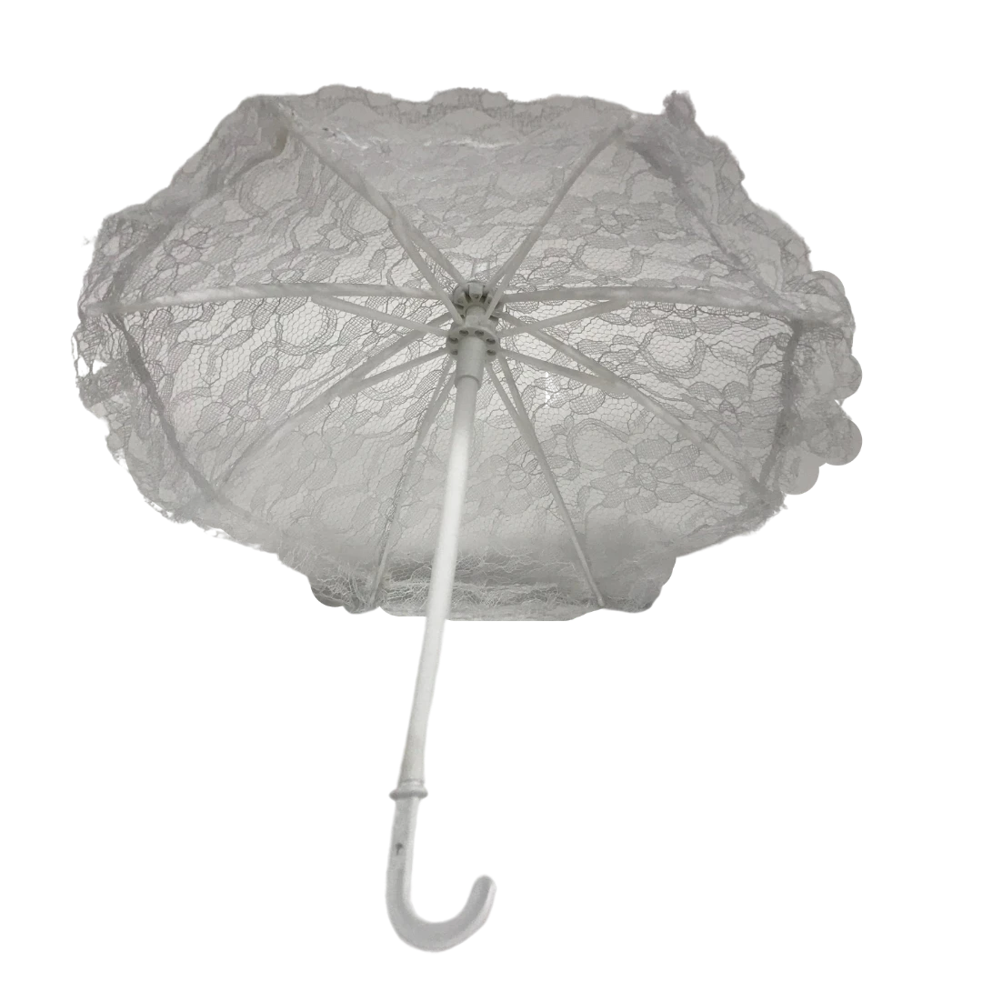 White Lace Umbrella with Lace Ruffle 6″ (Each)