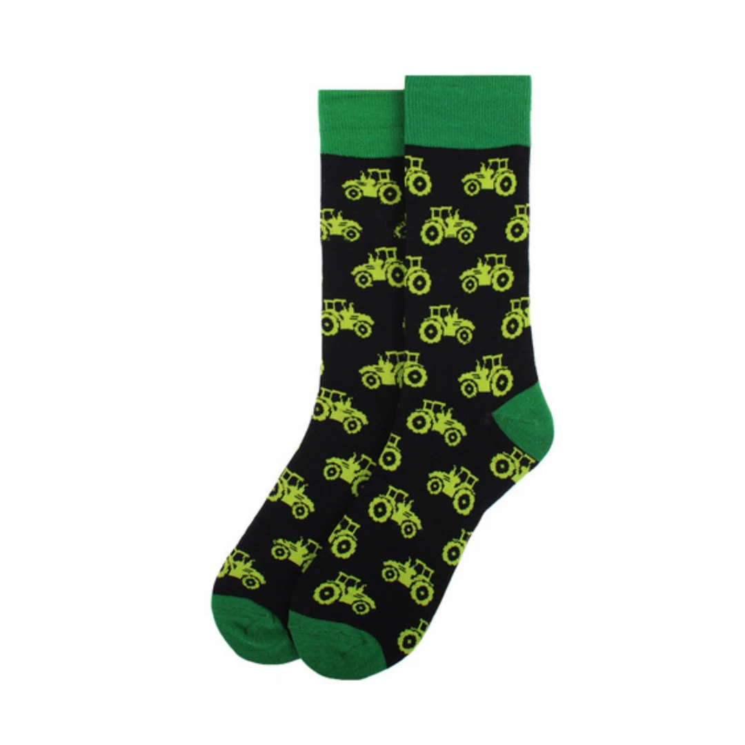 Add some fun to your outfit with our Novelty Socks. These socks are perfect for when you have to maintain being a professional but still have that burning desire to be fun & silly! Men’s Tractor Novelty Socks. 70% Cotton, 25% Polyester, 5% Spandex. One size fits 10-13. Machine wash, tumble dry low. Imported.