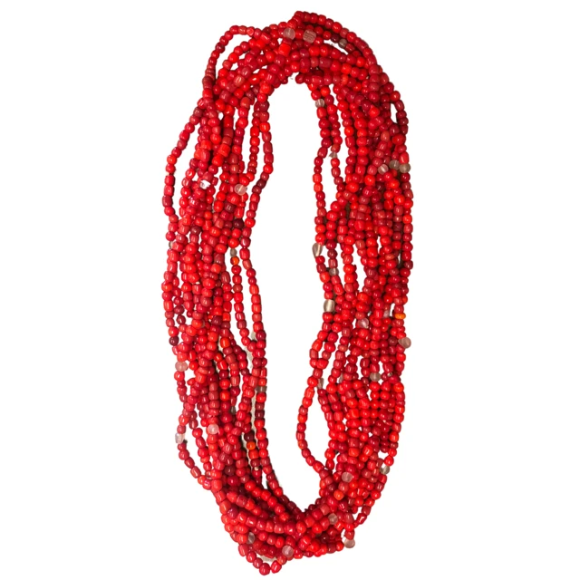 27″ Bright Red Glass Bead Necklace (Dozen)