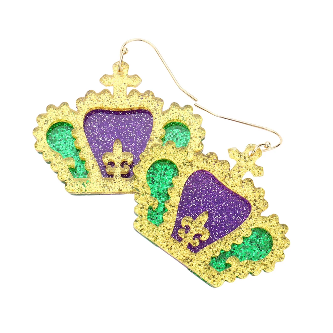 Mardi Gras Glitter Resin Crown Earrings (Pair)