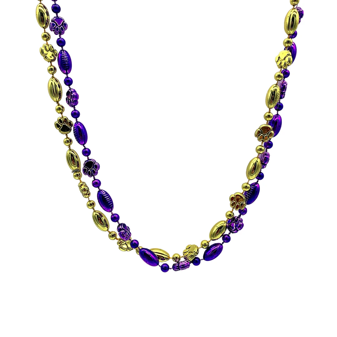 36″ Purple/Gold Tiger Paw and Football Necklace (Each)