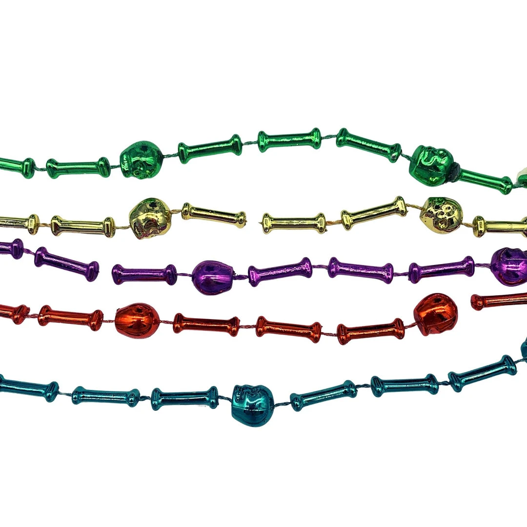 42″ Assorted Metallic Colors Skull and Bone Bead (Each)
