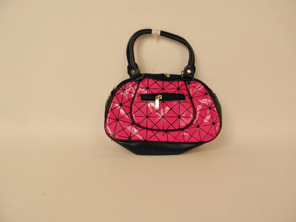 Hot Pink and Black Vinyl Handbag with Black Handle (Each)