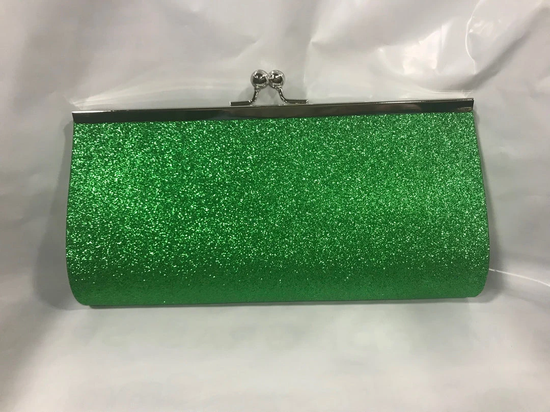 Large Green Glitter Clutch Purse 7.5″ x 4.5″ with Chain (Each)