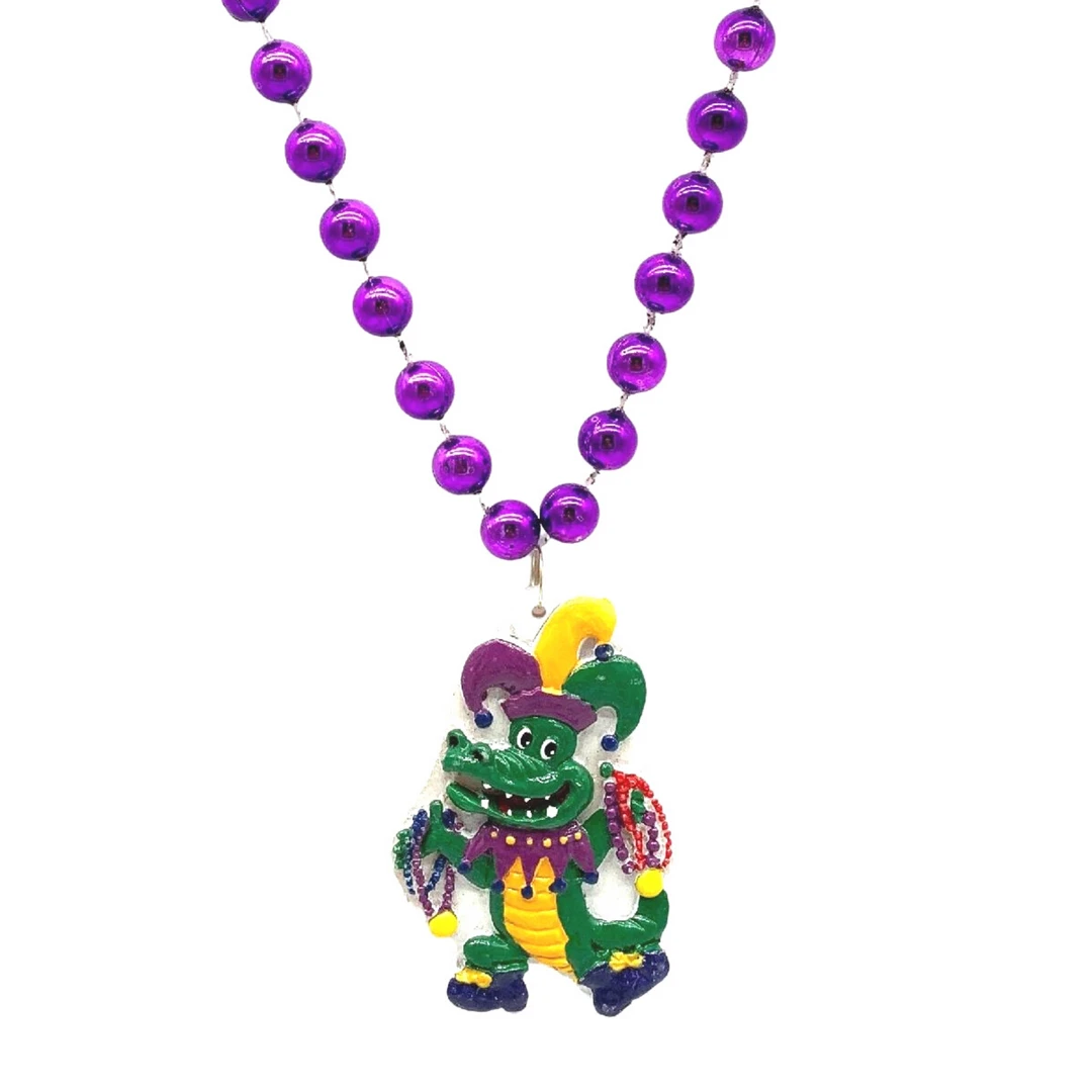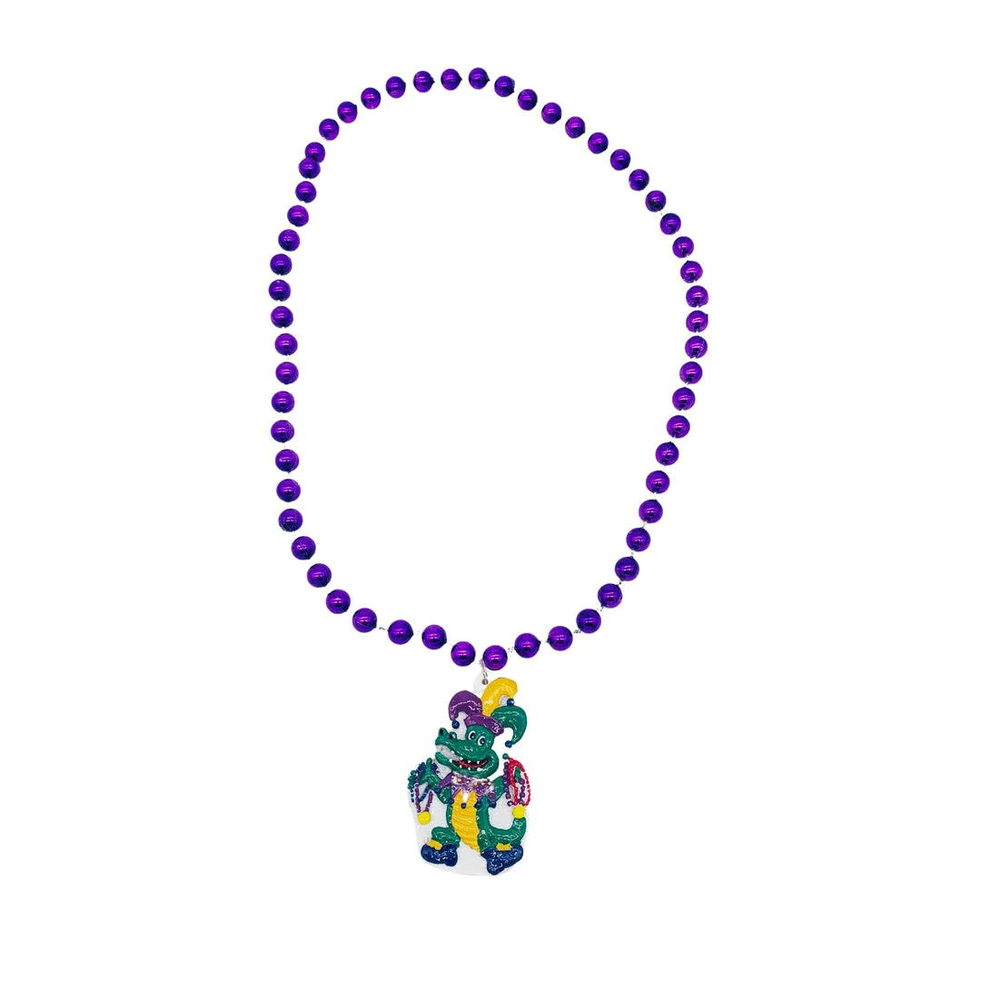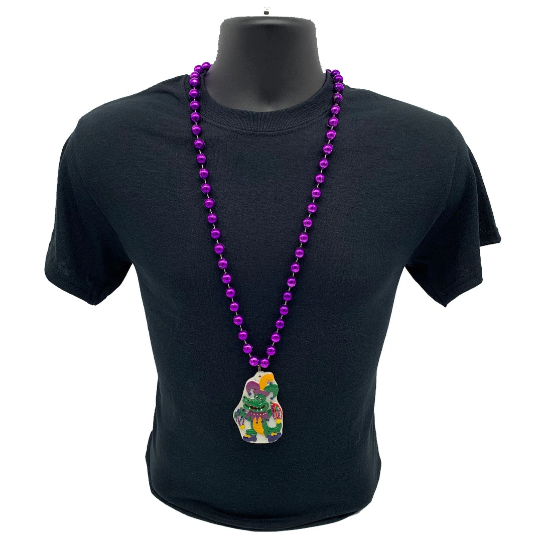 36″ 12mm Metallic Purple Bead with Alligator Medallion (Each)