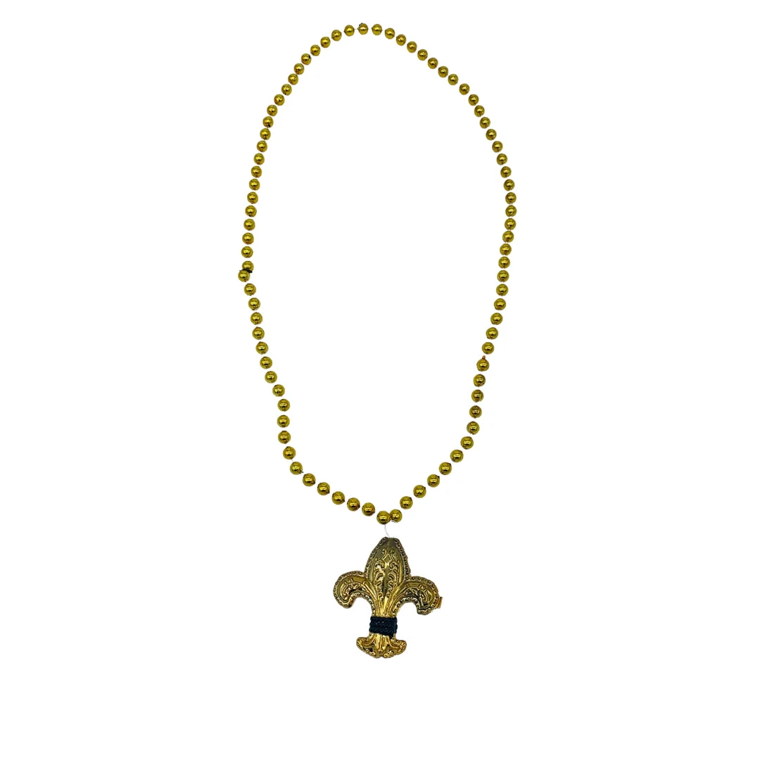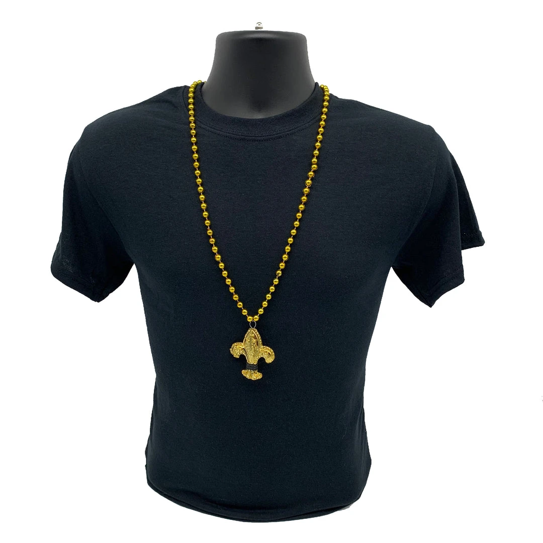 33″ Black and Gold Fleur de Lis with 7.5mm Gold Mardi Gras Beads (Each)