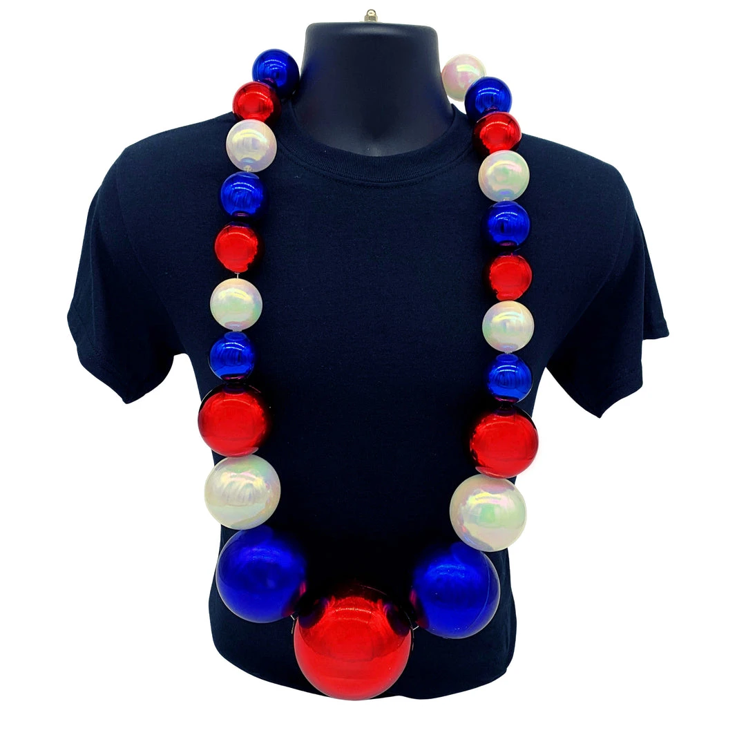 48″ 40/60/80/100mm Metallic Red, Metallic Blue and White AB Big Ball Bead
