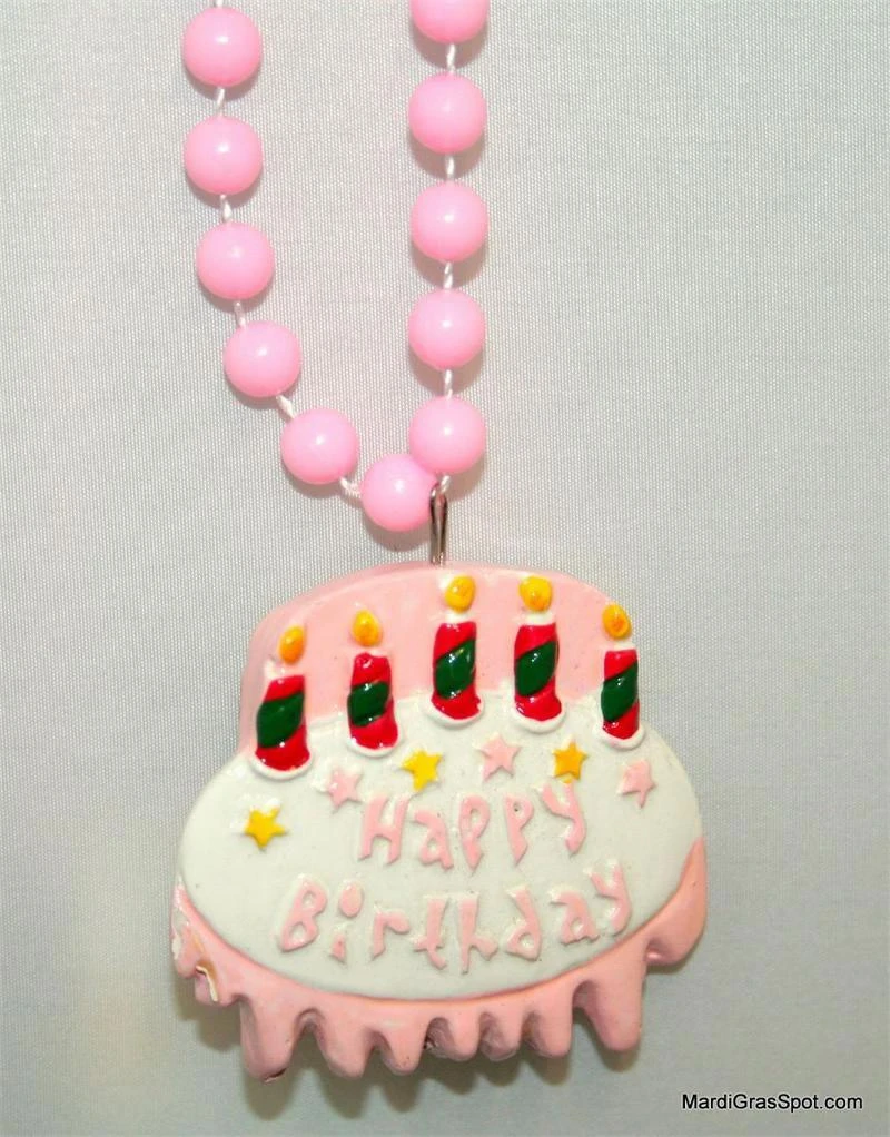 33″ 7mm Baby Pink Bead with Birthday Cake Pendant (Dozen)