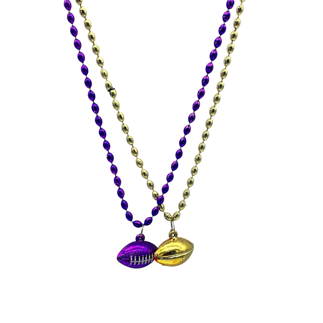 33″ Purple and Gold Football Mardi Gras Beads (Dozen)
