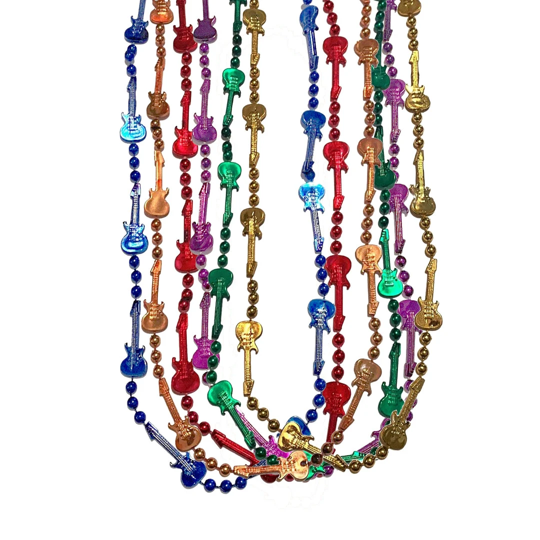 36″ Guitar Bead Necklace – 6 Assorted Colors (Dozen)