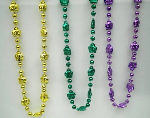 38″ Metallic Crown Mardi Gras Beads (Dozen)