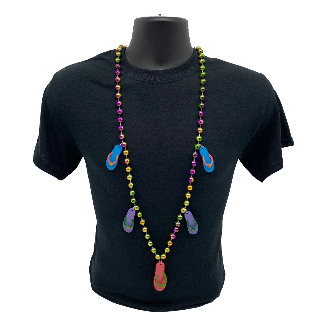 42″ 12mm Flip Flops on Purple, Green and Gold Dyed Beads Necklace (Dozen)